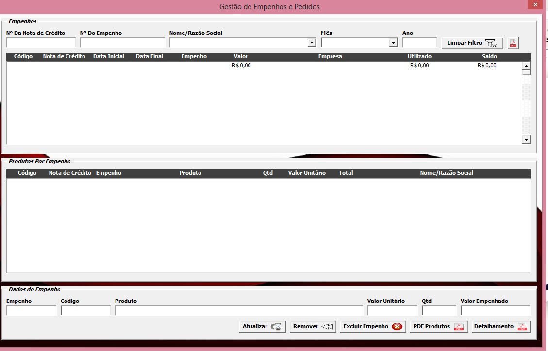 Planilha ideal para órgão comprador, desenvolvida para facilitar o trabalho de servidores no controle diário de notas de créditos, empenhos, pedidos e notas fiscais. A planilha possui basicamente as seguintes funções: