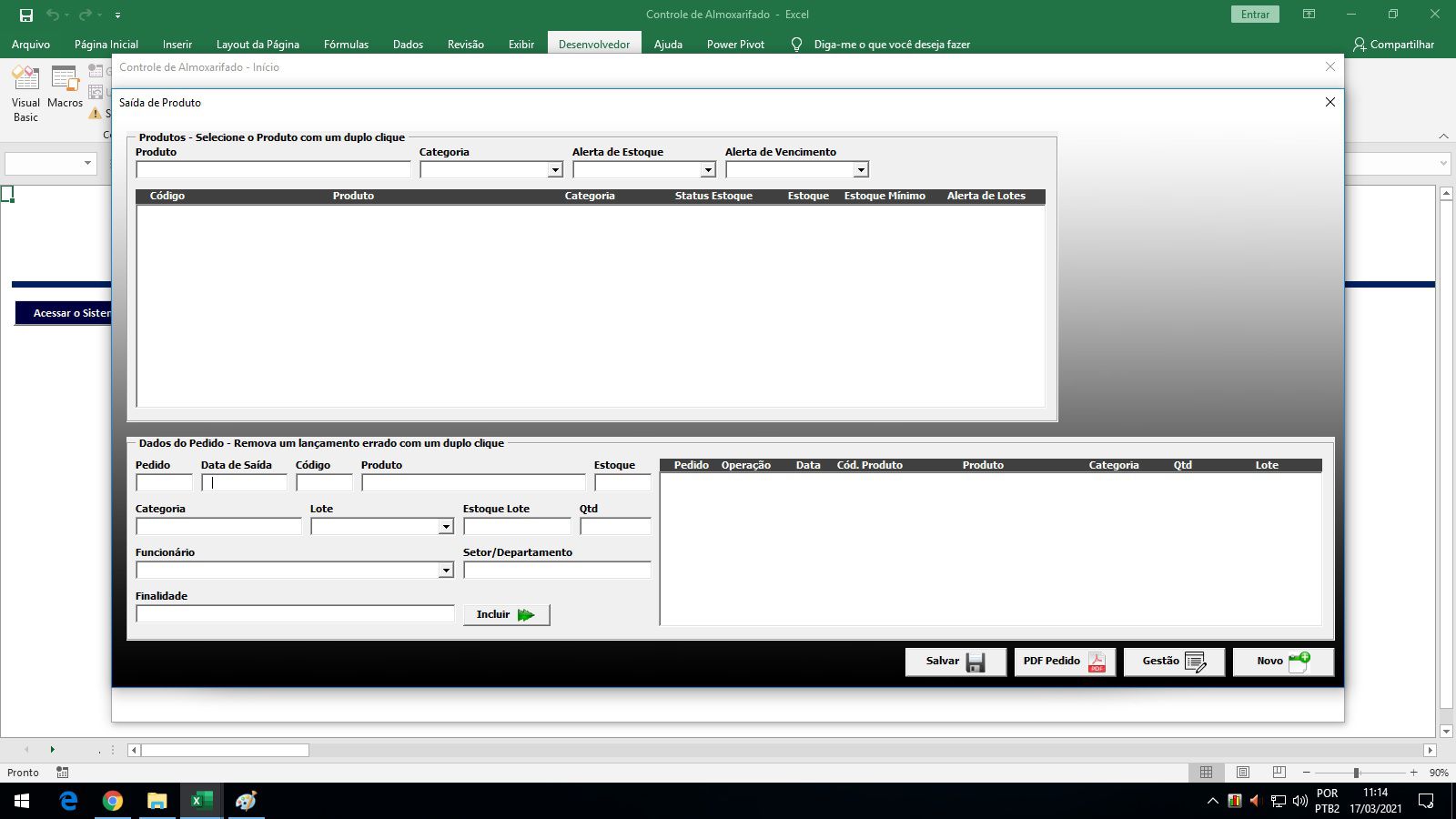 Saída de Produtos - Você controla a saída dos produtos, podendo informar quem retirou, qual o setor, qual a finalidade e emitir o pedido para assinatura do funcionário. Toda saída fica em histórico para consultas futuras.