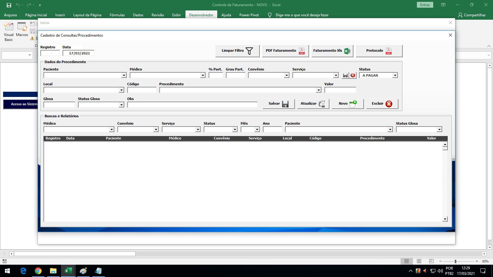 Os médicos estão cada vez mais ocupados e concentrados no desenvolvimento dos seus trabalhos, especialmente nos dias de hoje, com isso, sobra menos tempo para gerenciar o faturamento junto às clínicas e hospitais. Muitos médicos fazem seus controles em planilhas comuns, o que demanda muito trabalho e tempo que eles não têm. Boa parte dos atendimentos prestados em clínicas em hospitais não pagos de imediato, levando até meses para quitar o pagamento, as vezes sendo até glosados. O pbjetivo dessa ferramenta é justamente auxiliar o médico ou o admnistrador de faturamento, no processo de acompanhamento de faturas, observe abaxio o que você vai encontrar na planilha: