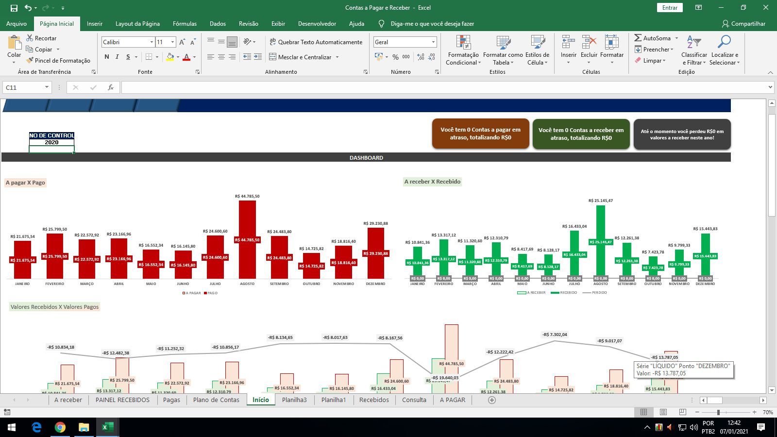 Planilha de contas a pagar e receber, controle suas previsões de receitas e despesas em um único arquivo, leve e com formulários que facilitam o preenchimento, funcionando como um verdadeiro software de gestão de financeira. Você vai contar com: