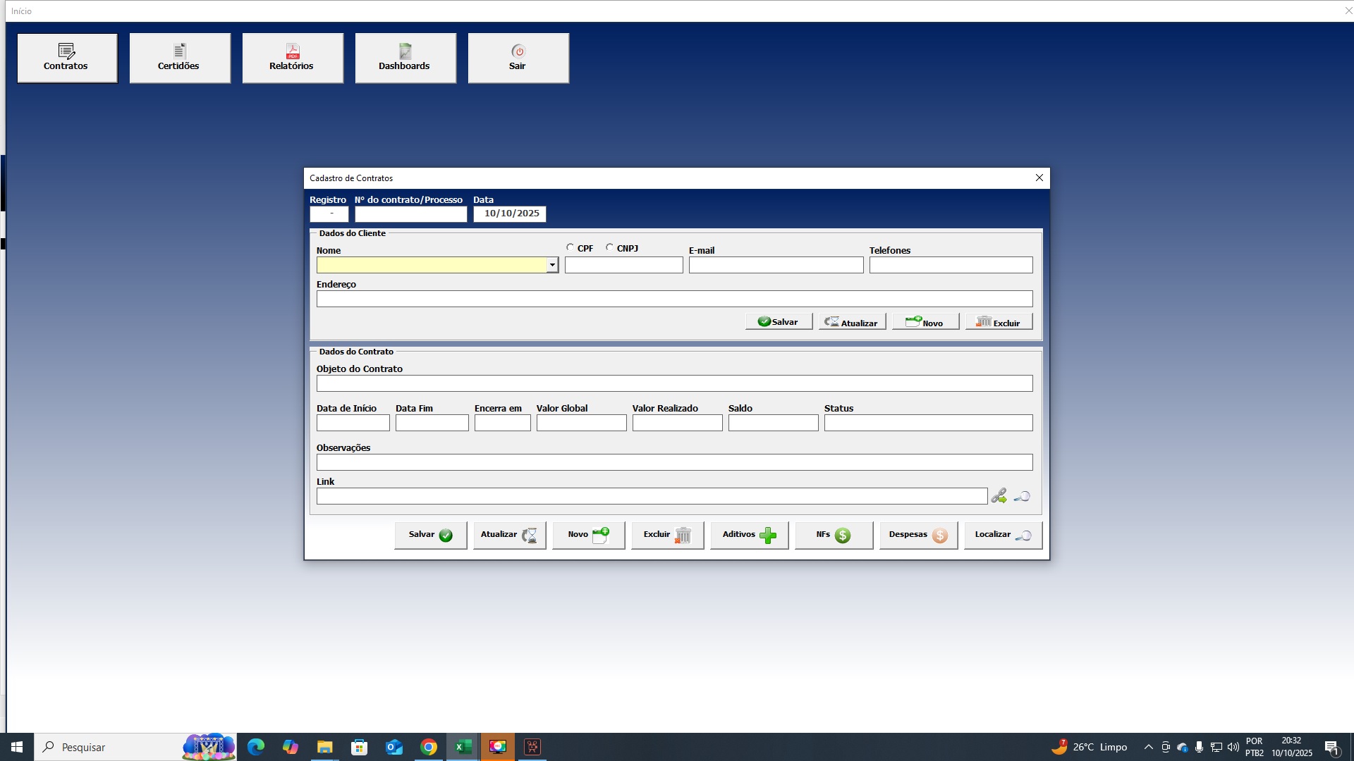 Cadastro Detalhado: Campos essenciais para registrar cliente, objeto, valor, partes envolvidas e mais.