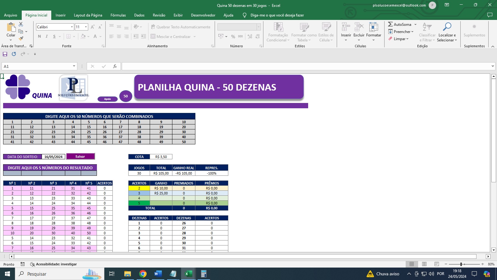 Atenção! Não garantimos vitórias, o objetivo da planilha é ajudar com análises e combinações de dezenas.